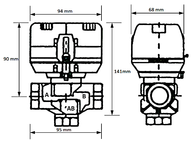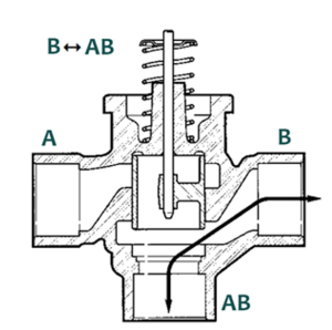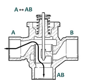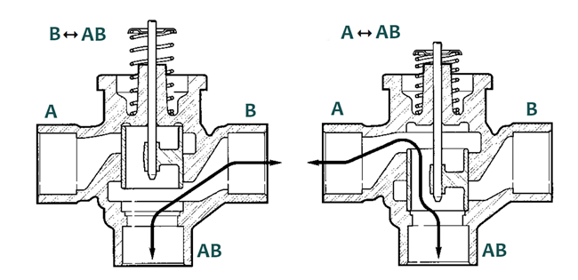 Portul permanent deschis este AB (în partea inferioara), sub acţiunea servomotorului, vana comuta atat pentru trecerea apei de la AB spre A sau spre B, cat si pentru trecerea apei de la A sau de la B spre AB.