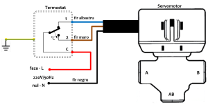In vederea unei automatizari, cu ajutorul termostatului se detecteaza temperatura de pe o teava / conducta si se comanda electrovana.