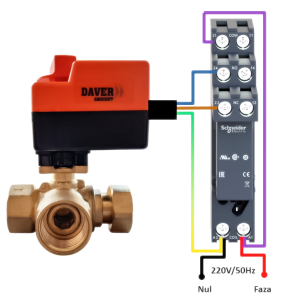 Vana 3 cai rotativa 1" cu olandez, servomotor, buton de control manual si releu 230V/50Hz, Daver